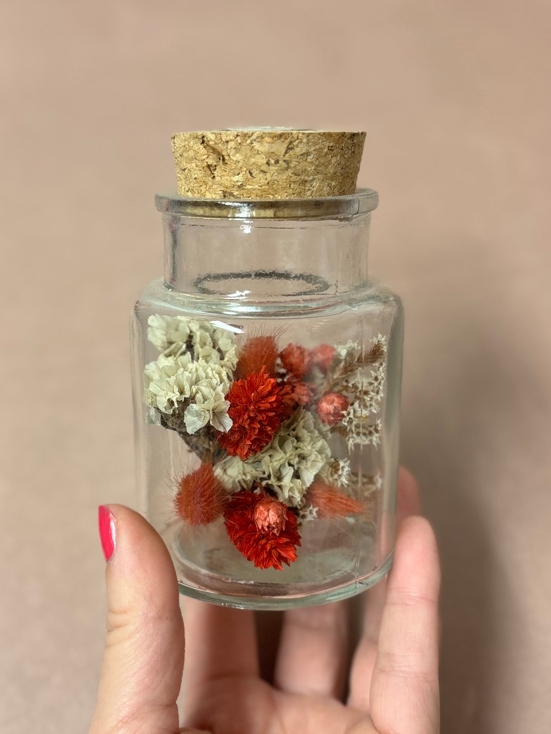 Die zarten Naturmaterialien werden sorgfältig in das klare Glas gesetzt und machen jedes Stück zu einem kleinen Unikat. Perfekt als sanftes Deko-Element, persönliche Geschenkidee oder als feiner Akzent in deinem Zuhause.