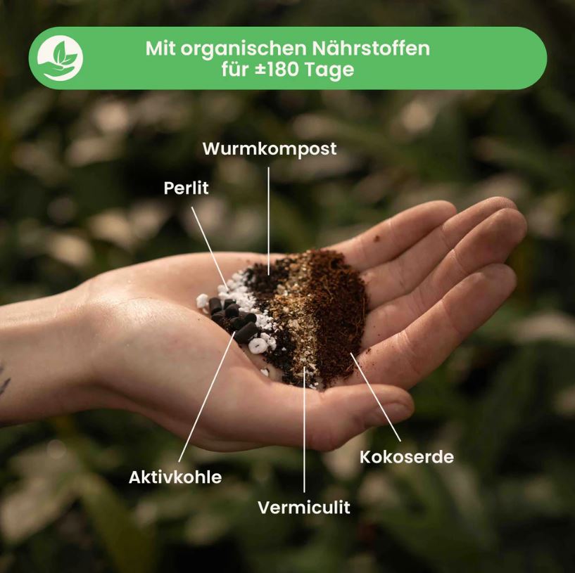 Der Calathea mix besteht sowohl aus Perlit als auch aus Vermiculit, was eine ausreichende Entwässerung ermöglicht, während das Vermiculit noch etwas Feuchtigkeit zurückhält. Dies hilft, die Erde gleichmäßig feucht zu halten. Das Wurzelsystem wächst gesünder und größer und Sie müssen die Pflanze nicht mehr so oft gießen. So haben Sie mehr Zeit, Ihre Pflanzen zu bewundern!