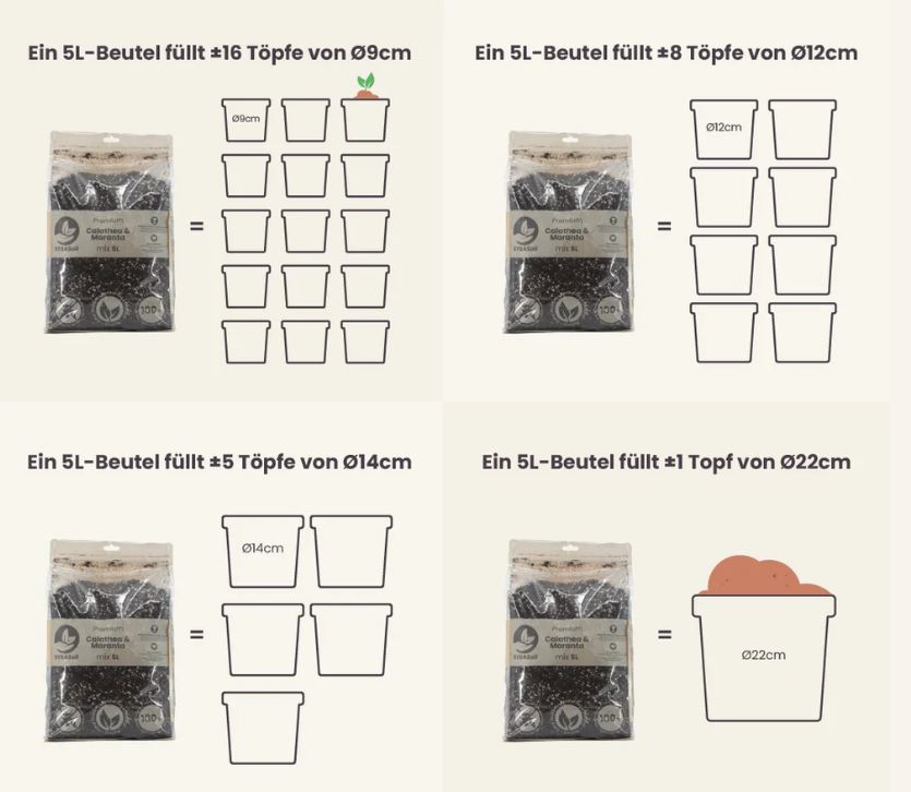 Calathea & Maranta stammen aus den südamerikanischen Dschungeln, sie sind es gewohnt, unter dem Blätterdach von größeren Pflanzen & Bäumen zu überleben. Sie kommen gut mit wenig Sonnenlicht zurecht, da sie an diese Umgebung gewöhnt sind. Der Dschungelboden hat ein feuchtes & reiches Substrat voller Nährstoffe aus abgefallenen Blättern & anderen Abfällen. Das Calathea Substrat ahmt diese Umgebung nach.