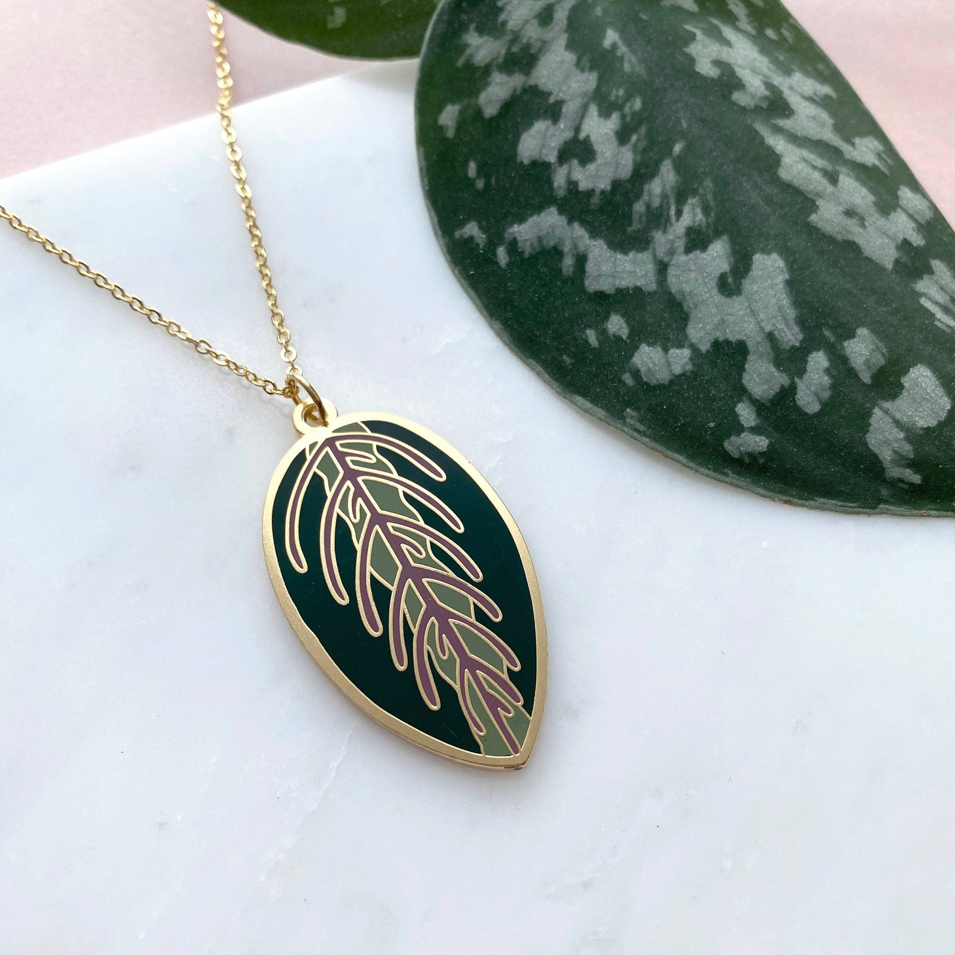 Diese Halskette misst 4 cm und hängt an einer 50cm Kette, vergoldet. Hergestellt aus nickelfreiem Messing, beschichtet mit einer schönen mattgoldenen Oberfläche und eingelegt mit farbiger Emaille.