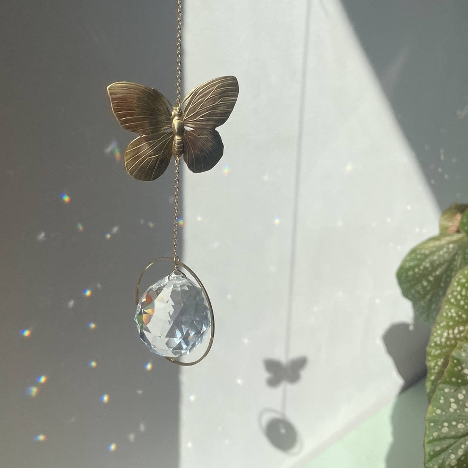 MARIPOSA | Handgemachter Suncatcher mit Glaskristall & goldenem Schmetterling