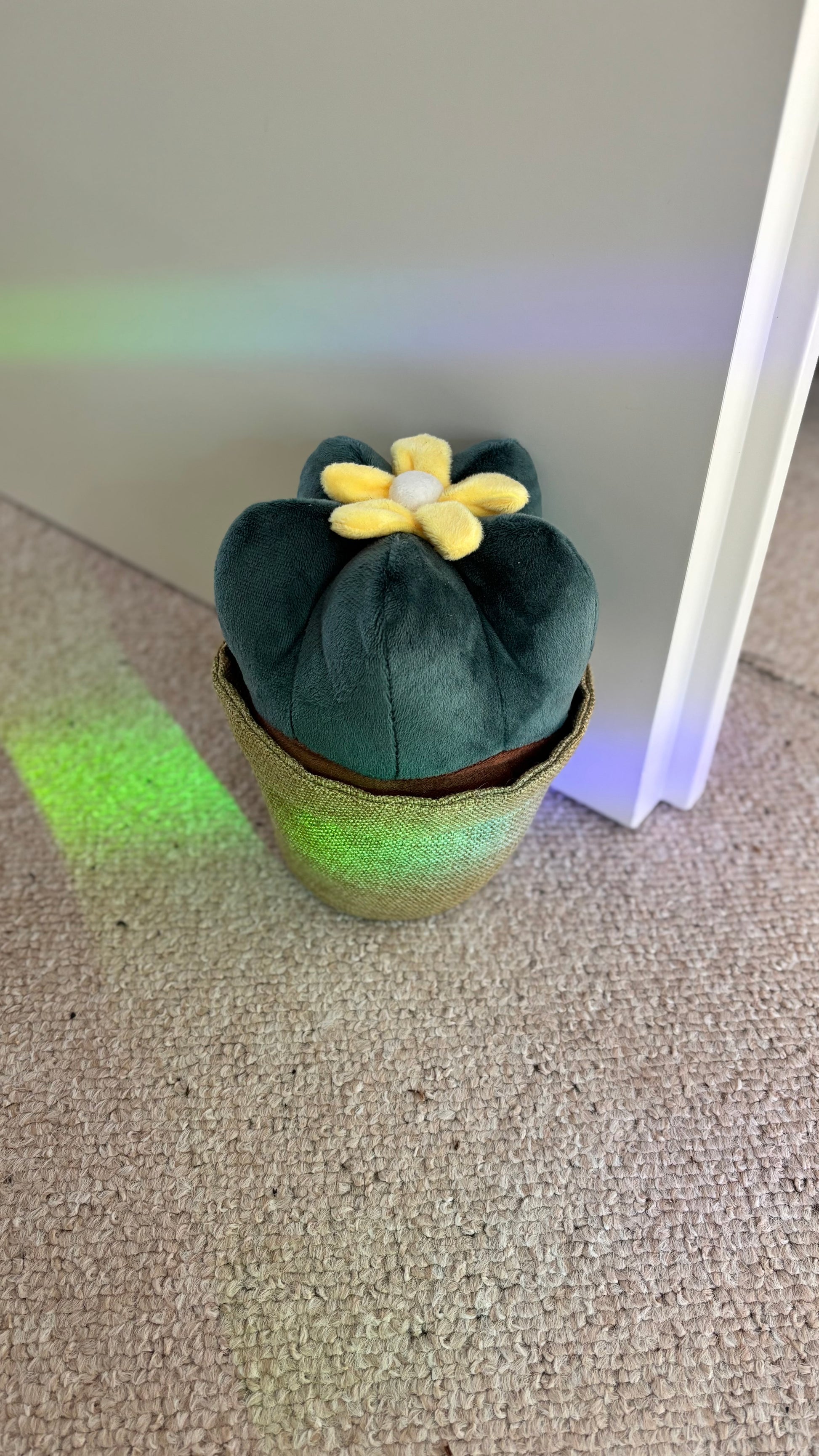 Ein Türstopper für Pflanzenfans, der sich anfühlt wie ein Kuscheltier und definitiv winterfest ist - dazu stark genug um Zugluft zu trotzen.