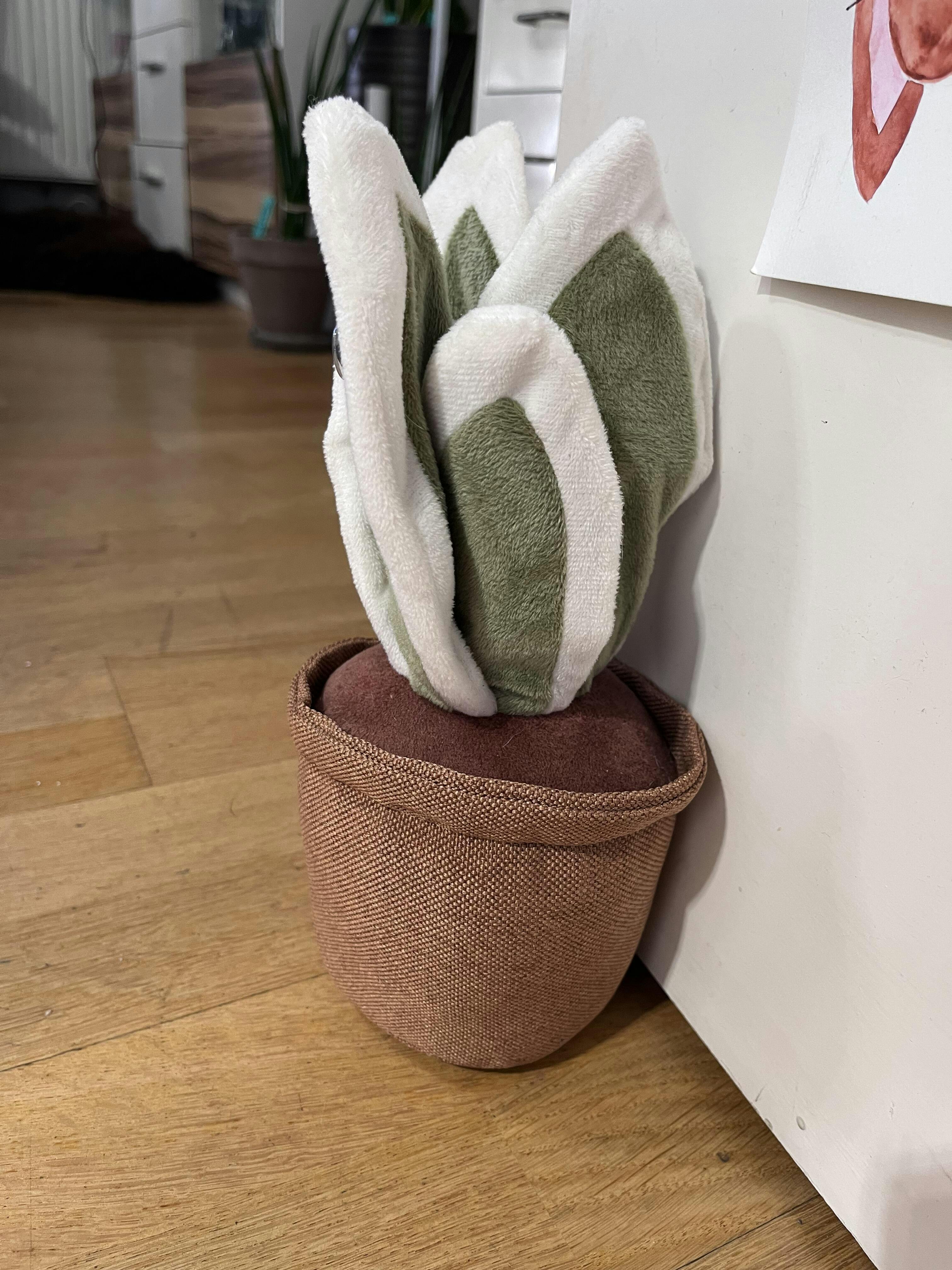 Der weiche Stofftopf mit plüschigen Blättern sieht so echt aus, dass du ihm fast einen Namen geben willst. Tu es ruhig - er hört auf alles.